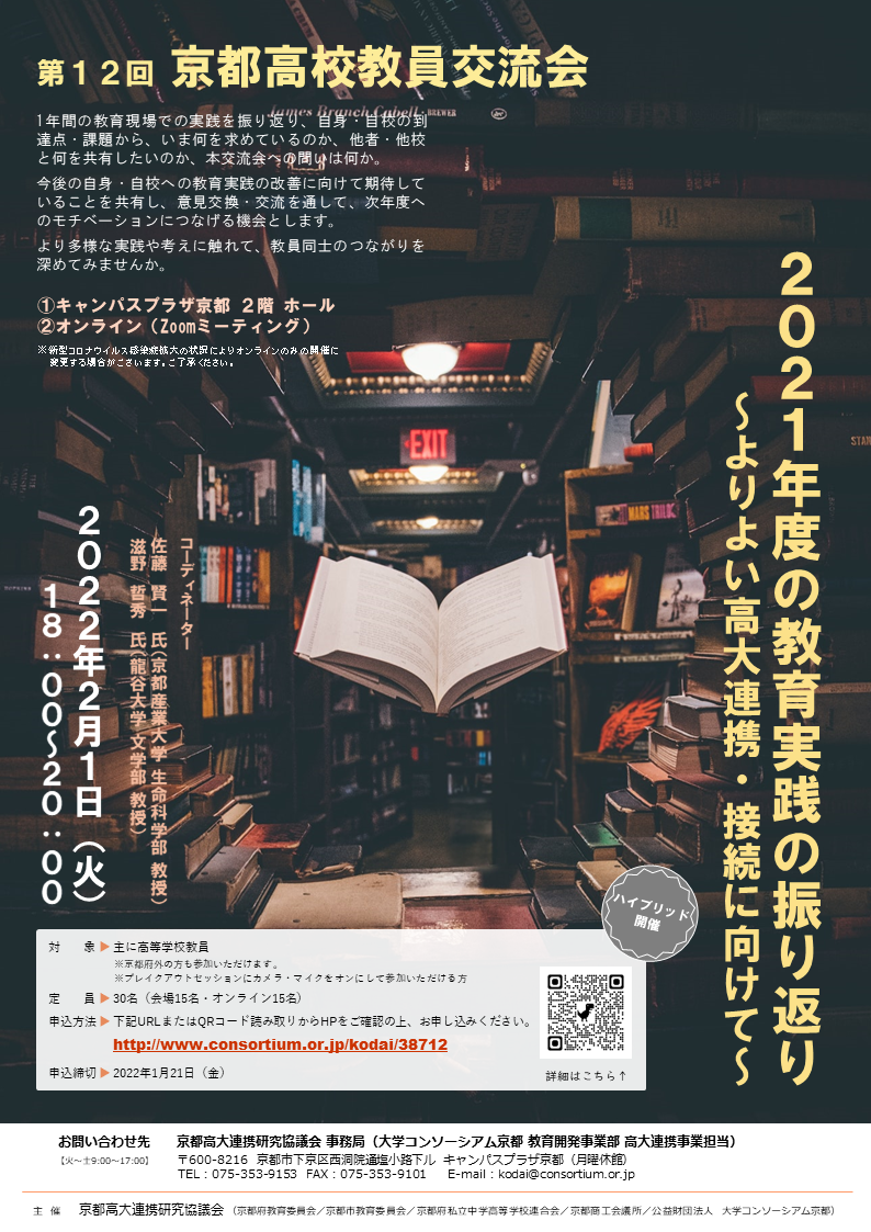 홈페이지 » 【고등학교 교원을 중심으로】2월 1일(화) 제12회 교토 고등학교 교사 교류회 참가자 모집